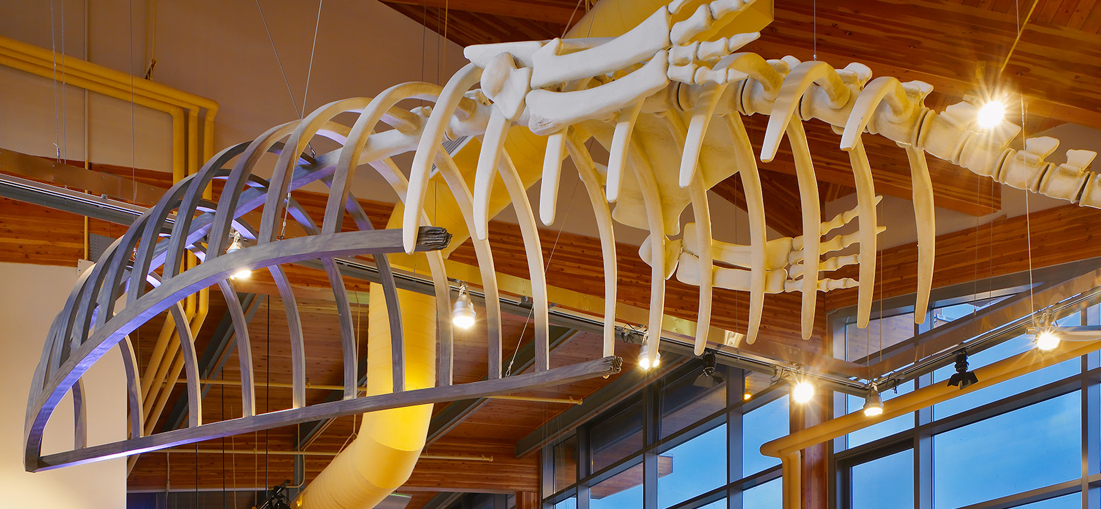 Gruen took responsibility for the mechanical, electrical design for the discovery centre, with Consullux working on the lighting design. The building design was focused on providing ‘green’ initiatives including the use of renewable energy sources. As innovation in green technology, the centre installed a ground source heating and cooling system that harnesses energy from the ground for its heat, ventilation and air conditioning needs. The system reduces dependency on conventional fuels, lowering costs and greenhouse gas emissions. Additional cost savings resulted from a unique installation method for the system: to preserve the long-term stability of the grounds, the piping was placed into the foundation piles, avoiding extra drilling. The ground source vertical loop is proposed as a heat sink and a heat source for ground source heat pumps.