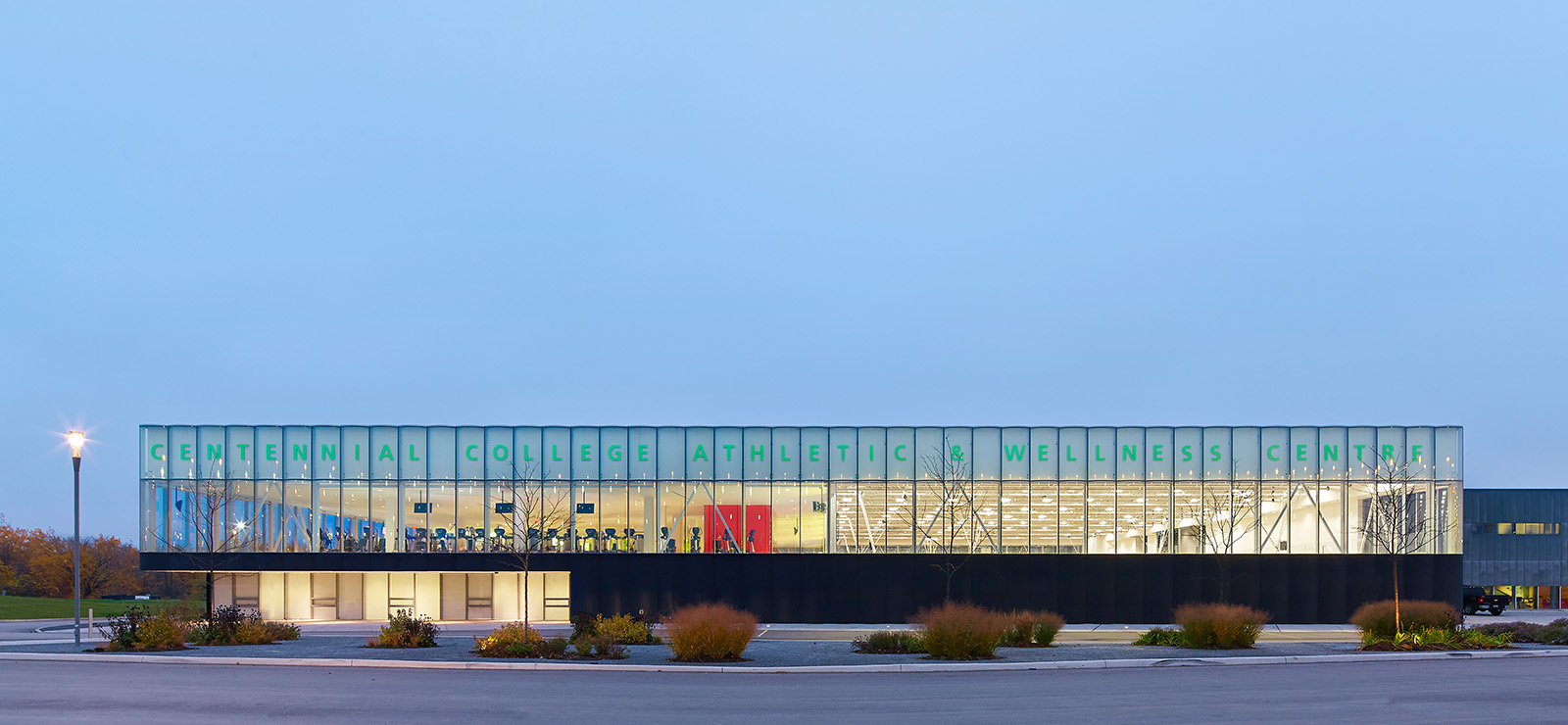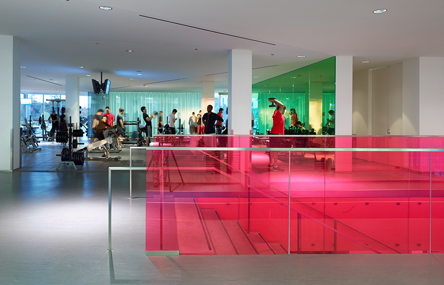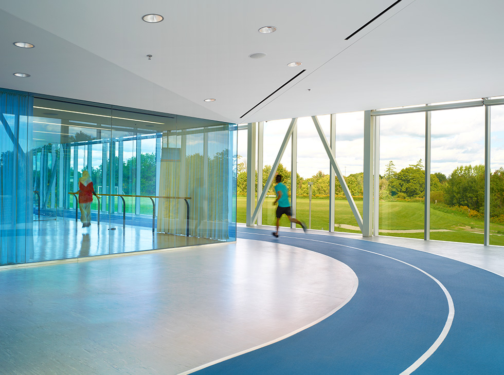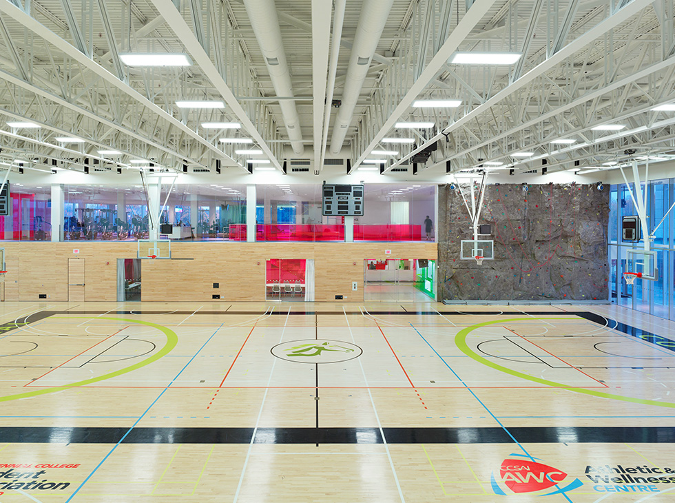 Also included is a centre with LED lighting that changes colour according to an event's theme, designed by Consullux. The gym also plays host to varsity games and private functions. Flat-screen televisions are equipped throughout the second floor of the centre for viewing by those using the exercise equipment.