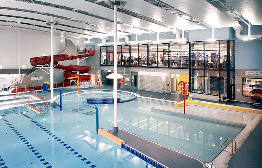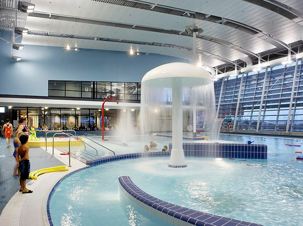 Features of the facility include four NHL-sized ice pads, a leisure pool and lazy river, water slides, whirlpools, a therapy pool, fitness centre, food concessions, outdoor sports field, skateboard park, a playground, basketball court, library, nursery/childcare services, banquet room, multiple meeting rooms, and lounge.