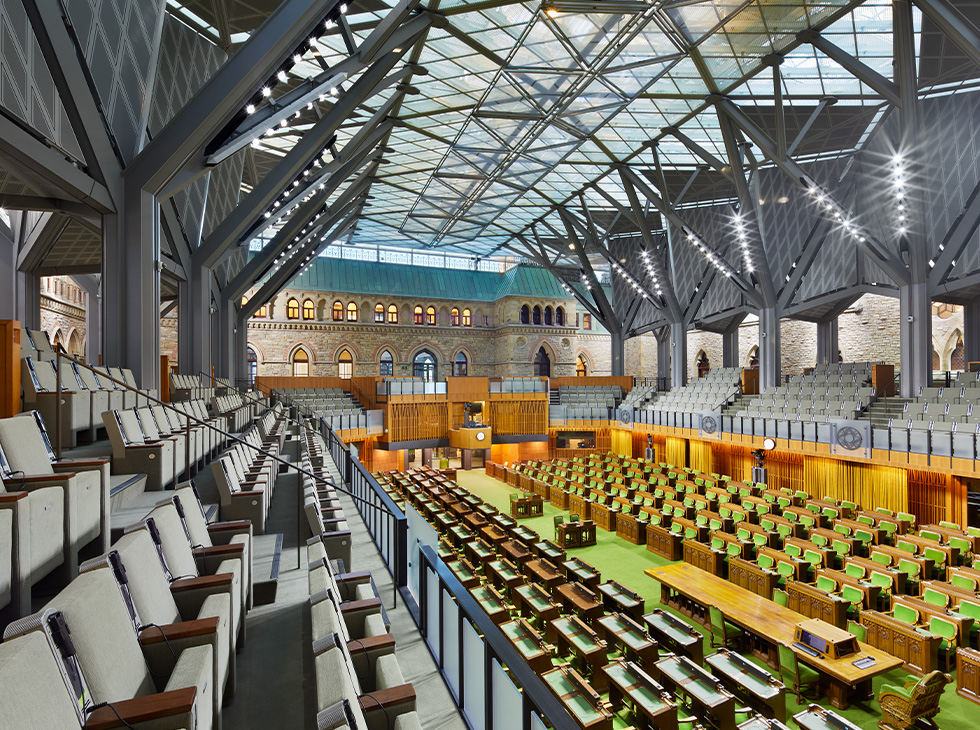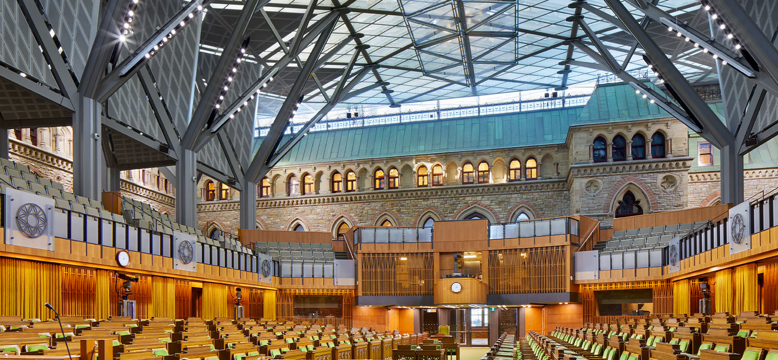 • Enclosed courtyard, providing a temporary House of Commons assembly space in this location, thus allowing a full upgrade of the Centre Block.